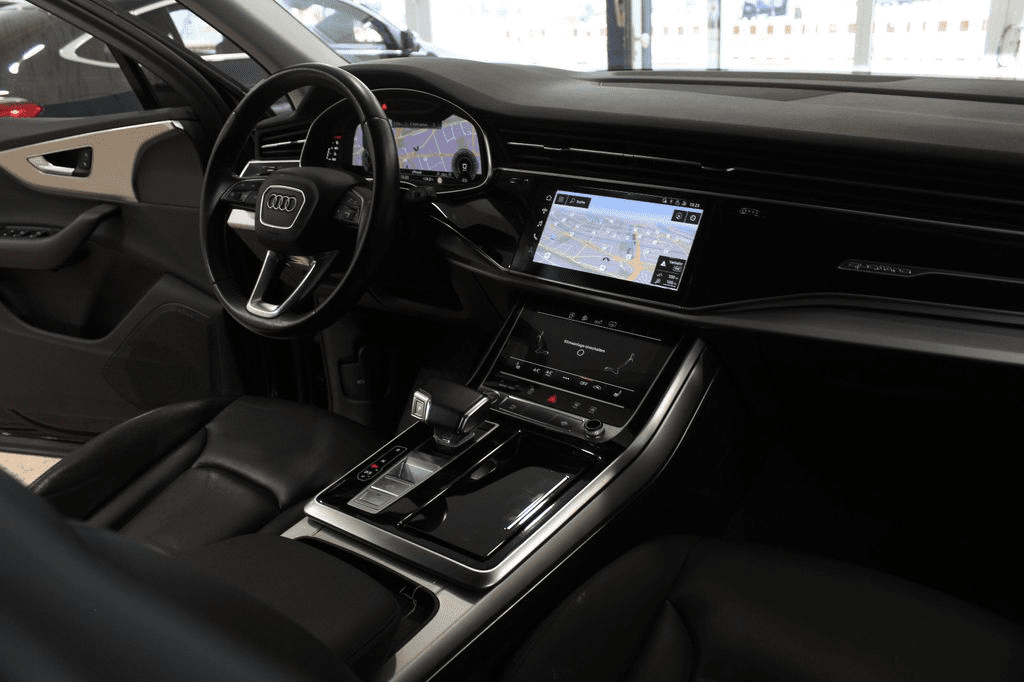 Le Q7 est équipé des technologies modernes telles que la navigation MMI Plus avec écran tactile, cockpit virtuel numérique, connectivité Apple CarPlay/Android Auto, caméra de recul, assistance au stationnement avant et arrière, ainsi que des aides à la conduite multiples : détection de fatigue, reconnaissance des panneaux, régulateur de vitesse adaptatif, et plus encore.