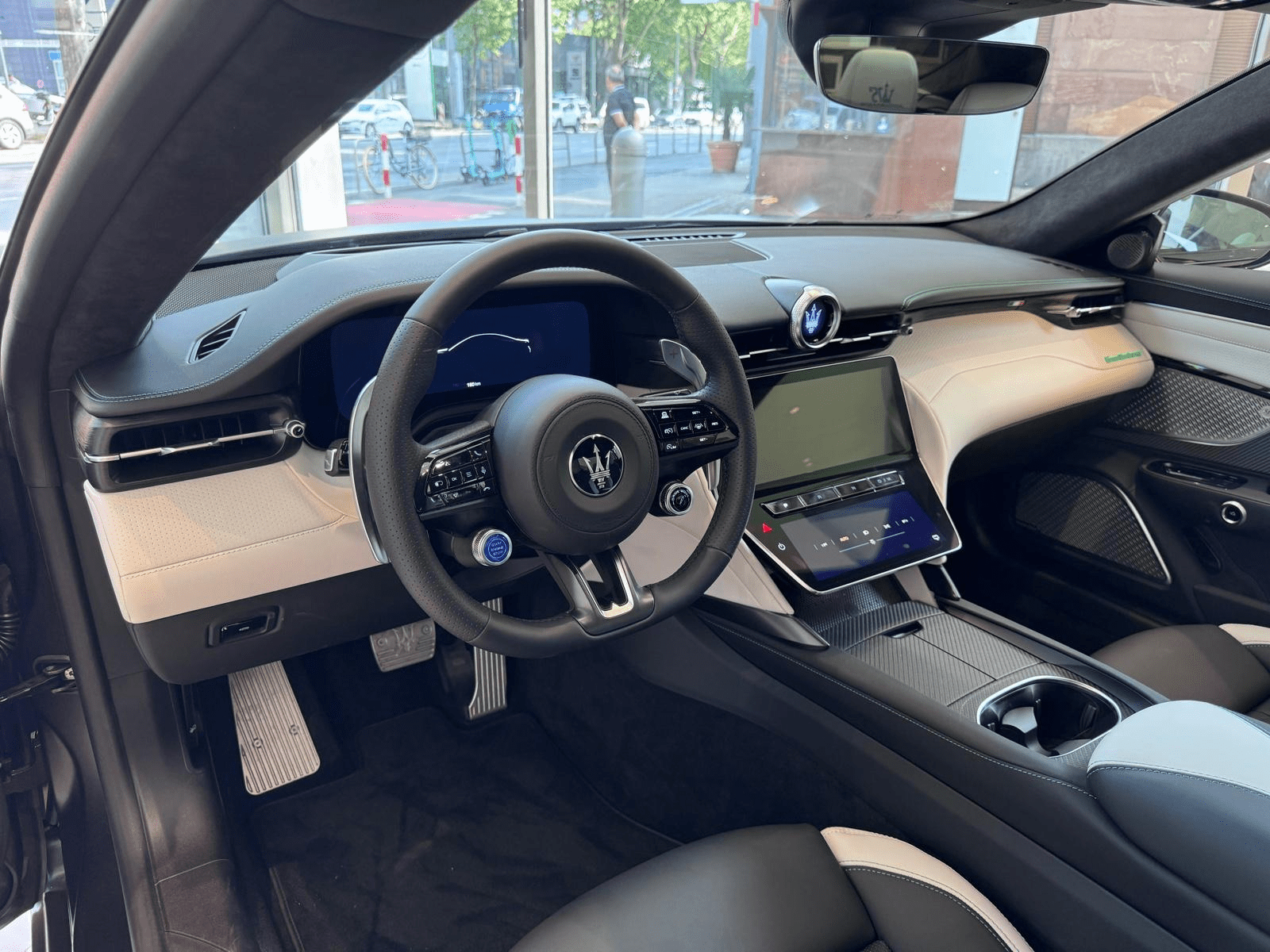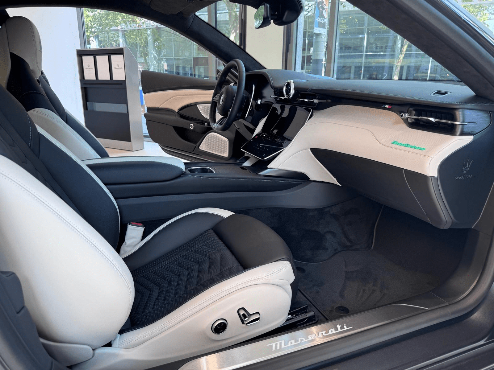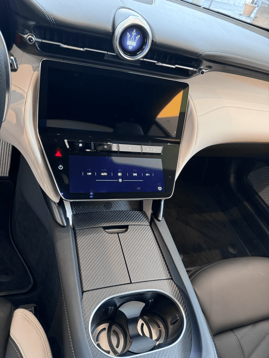 L’extérieur est habillé de la teinte Nero Cometa Mat, issue du programme Fuoriserie Quadri-coat, subtilement rehaussée par des détails vert menthe exclusifs PrimaSerie. À l’intérieur, le cuir pleine fleur spécifique est associé à des inserts en fibre de carbone 3D et à une finition artisanale unique. Le confort est optimal avec les sièges avant ventilés et chauffants, les commandes 18 positions à mémoire, et une ambiance sonore immersive signée Sonus Faber.