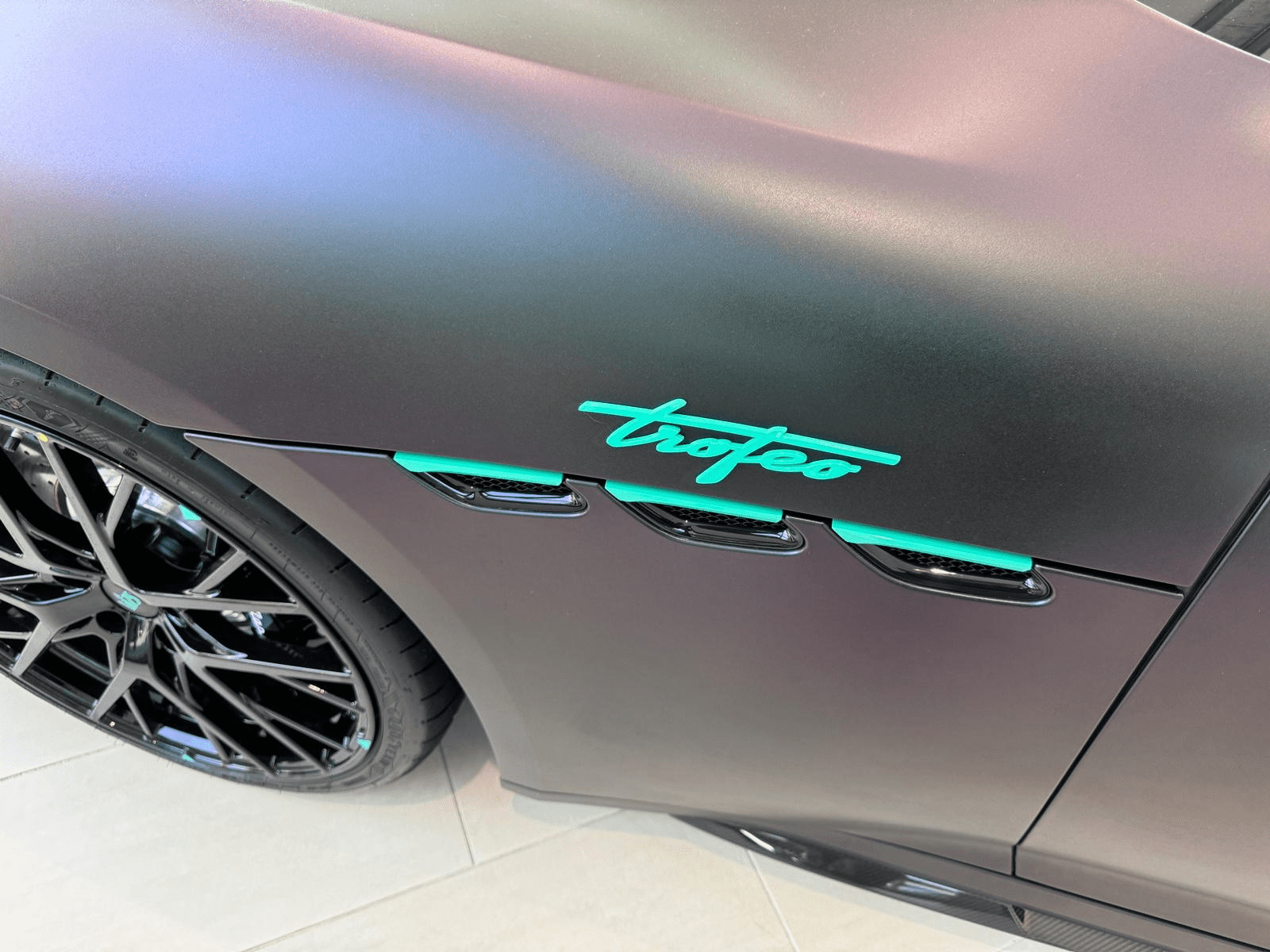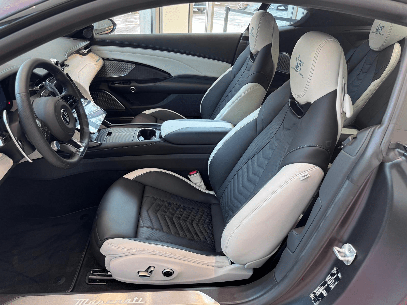 Édition ultra-limitée GranTurismo Trofeo 75th Anniversary Nero Cometa, motorisation V6 3.0L Biturbo de 549 ch, couleur exclusive matte noire avec finitions mint, transmission intégrale, pack ADAS, suspensions adaptatives, intérieur full cuir spécifique PrimaSerie, système audio Sonus Faber. Véhicule immatriculé en juillet 2024, 1.500 km seulement, état concours, disponible immédiatement. Série limitée à 75 exemplaires dans le monde – Allure iconique et motorisation Nettuno biturbo – Collector 2024